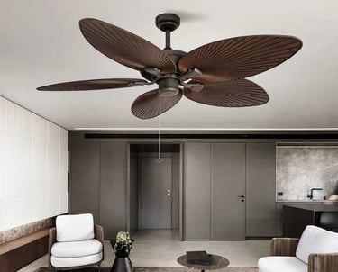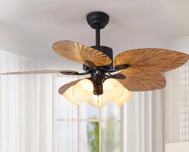 Bring a touch of island elegance to your space with this beautifully crafted Tropical Leaf Blade Ceiling Fan. Featuring five large, natural leaf-shaped blades, this fan combines both form and function—perfect for verandas, patios, garden lounges, or even indoor tropical-themed décor.