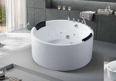 Turn your bathroom into a sanctuary of shared luxury round whirlpool bathtub that blends modern aesthetics with full-body hydrotherapy. Ideal for couples or luxury spaces, this model’s symmetrical design and twin headrests make it perfect for relaxing soaks and spa-like indulgence.