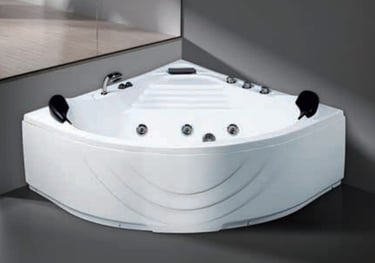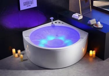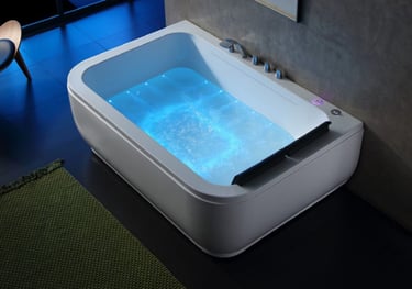 Built with a double-headrest layout and advanced jet massage system, this bathtub offers therapeutic relief, ambient mood, and bold elegance—all in one.