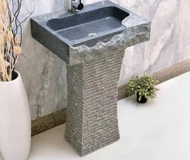 Refined yet rugged, the VIVISA Raw Edge Stone Basin set is a bold expression of earthy luxury. Crafted from solid stone, the basin features a hand-finished raw outer edge that retains its natural charm, balanced by a smooth, polished interior for ease of use.